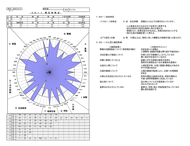 KD-Ⅰ調査結果には、面接時の確認事項や判断のポイントなどにお役に立つコメントも付いており、使いやすくなっています。