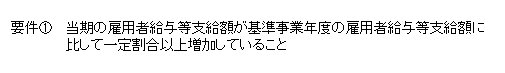 当期の雇用者給与等支給額が基準事業年度の雇用者給与等支給額に比して一定割合以上増加していること